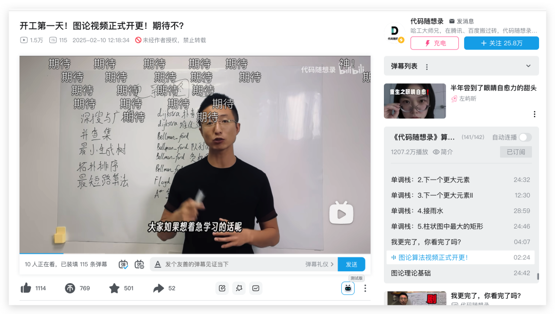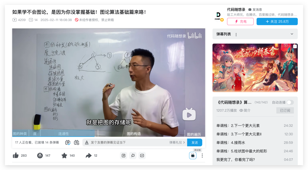 目前已经在B站更新两期了,一期是通知,一期是图论理论基础。