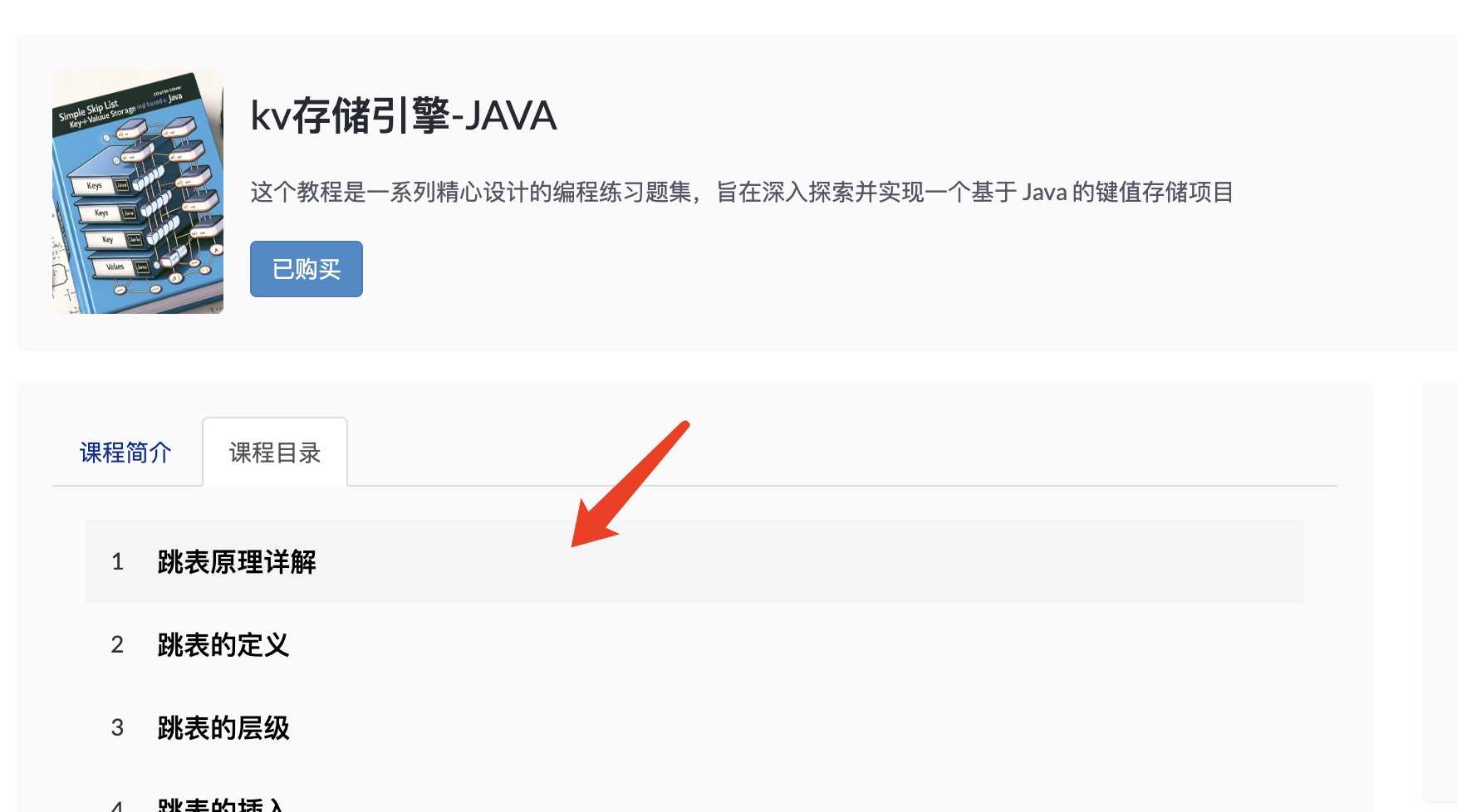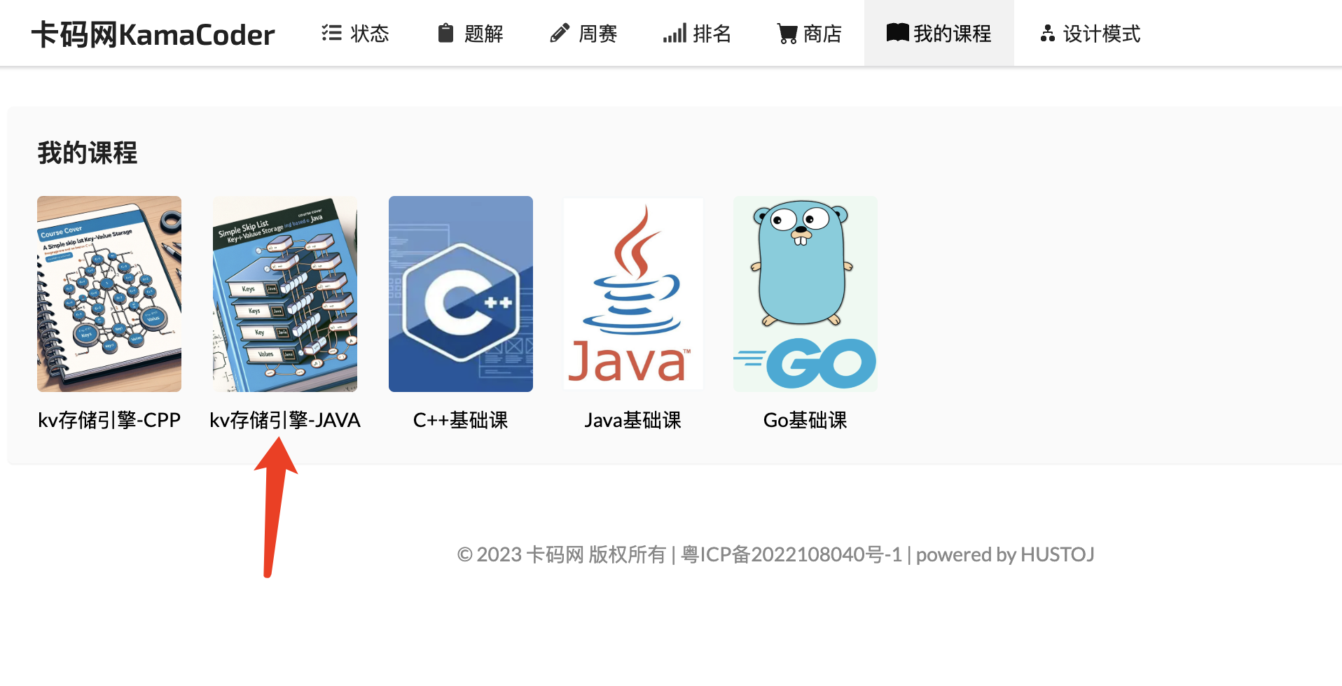 进入到我的课程页面,选择【kv存储引擎-JAVA】。