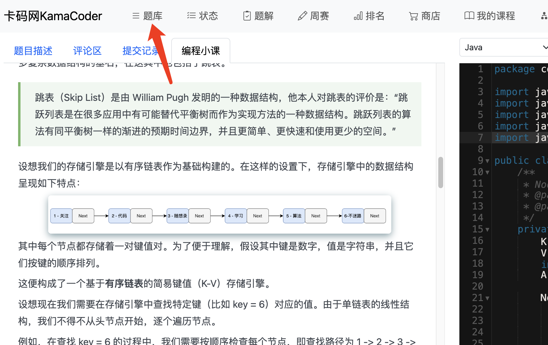 本项目课程将基于卡码网的判题系统,来带大家一步步实现跳表。
