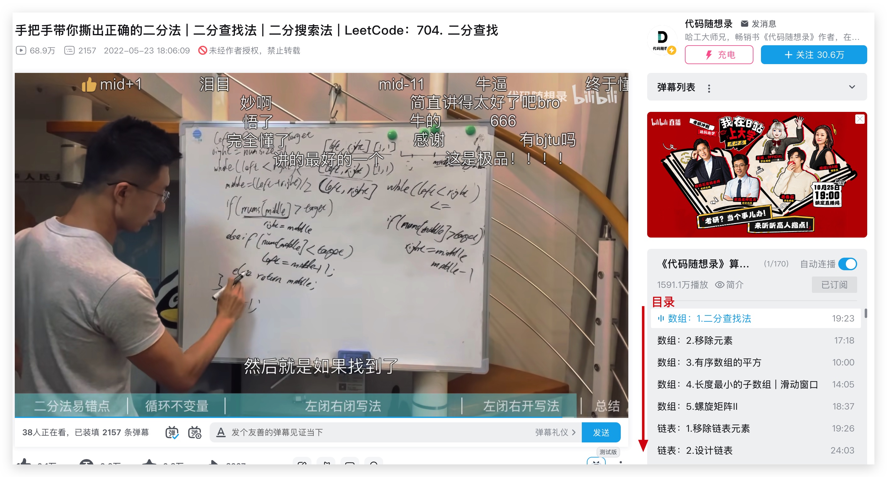 所以在 2022年,我决定在B站(B站同名:代码随想录)上更新《代码随想录》讲解视频,花费了将近一年的时间,更新完毕,共140期算法视频,免费提供给大家学习。