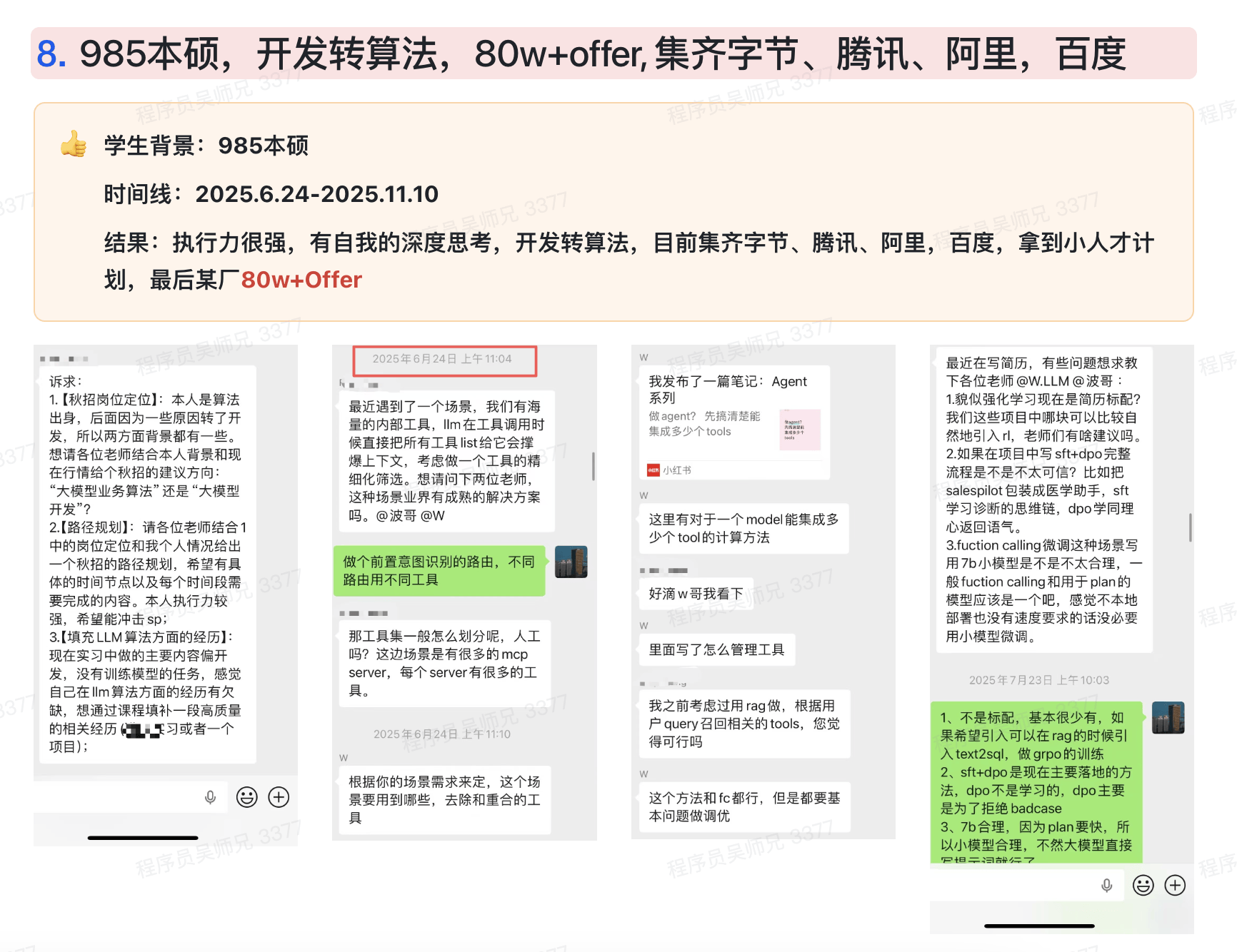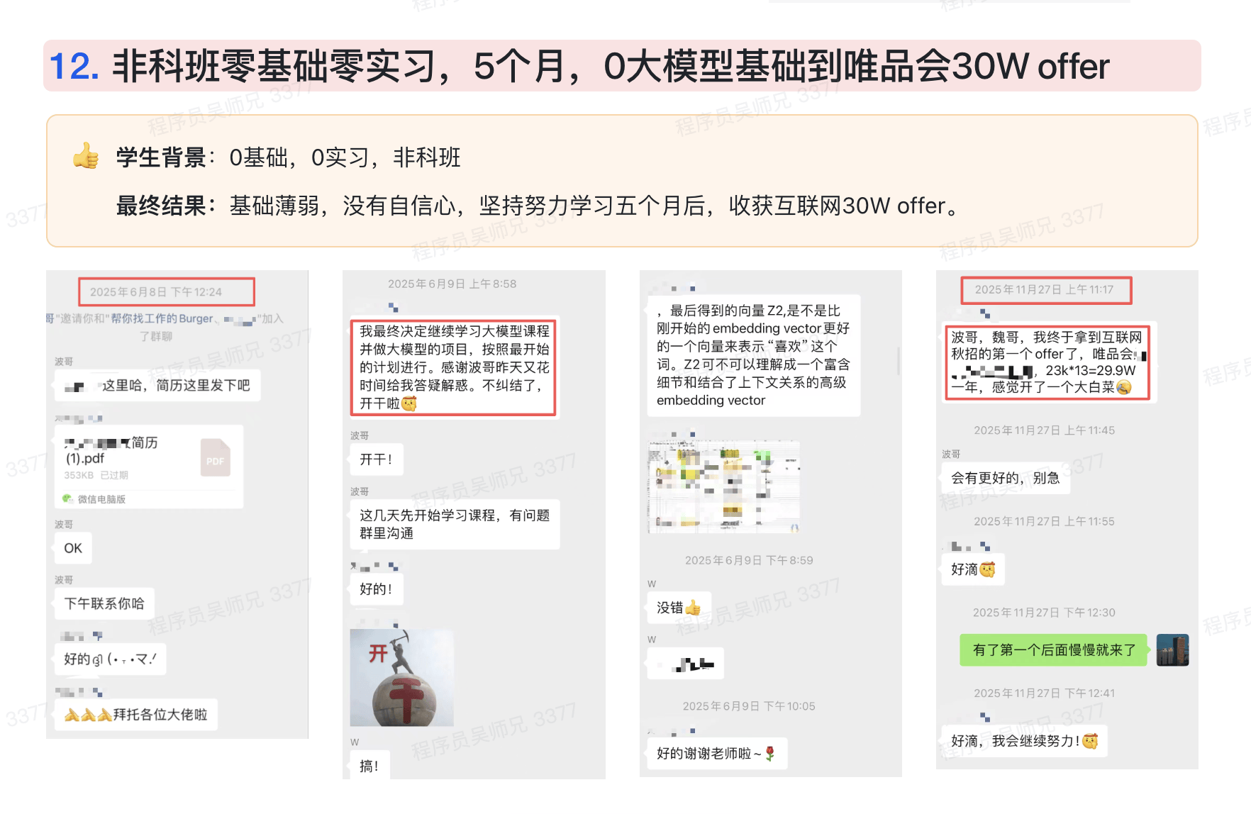 这是吴师兄为「想要转入大模型方向、拿到AI算法或大模型工程师Offer」的同学打造的一套全流程陪跑课程。