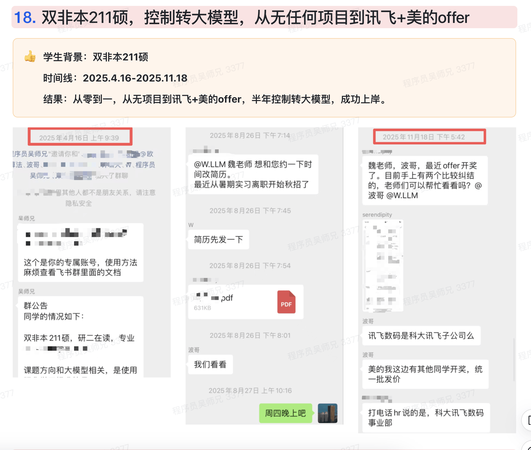 # 3、双非本+211硕 → 半年拿讯飞+美的 offer