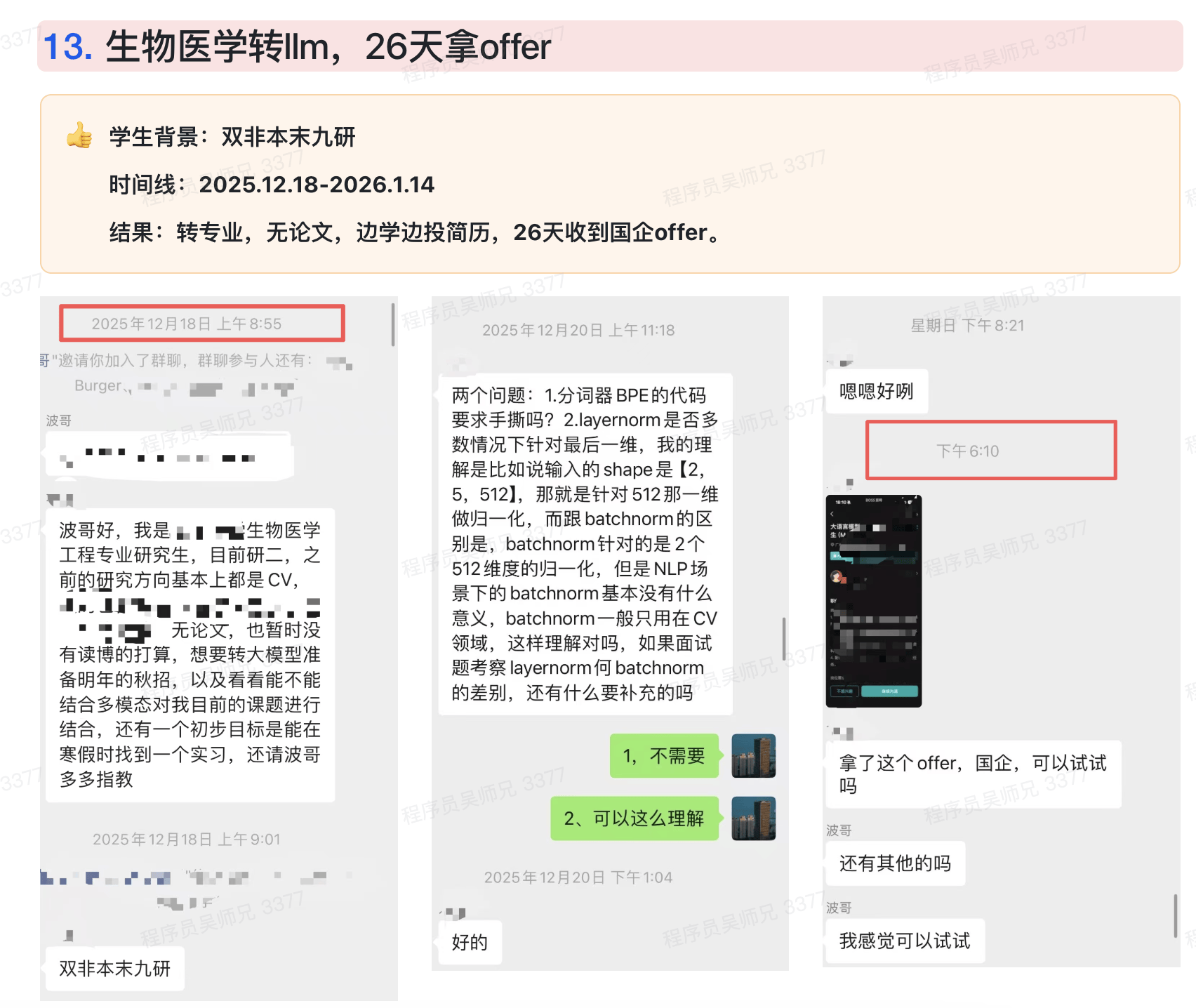 # 3、生物医学转 LLM → 26 天拿 offer