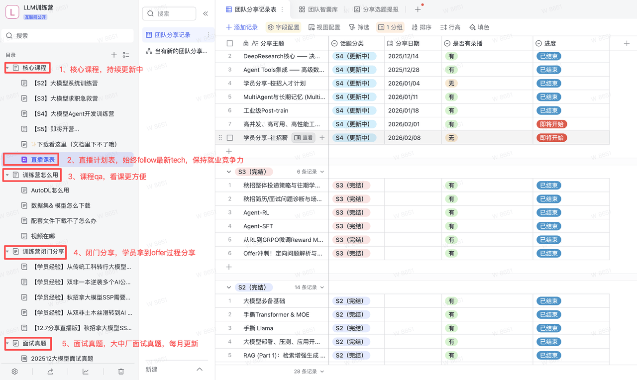 同时,我们花了半年时间,自研了一个大模型训练和学习的平台(即将上线),目的只有一个:让学员们的学习效率能更加高效!