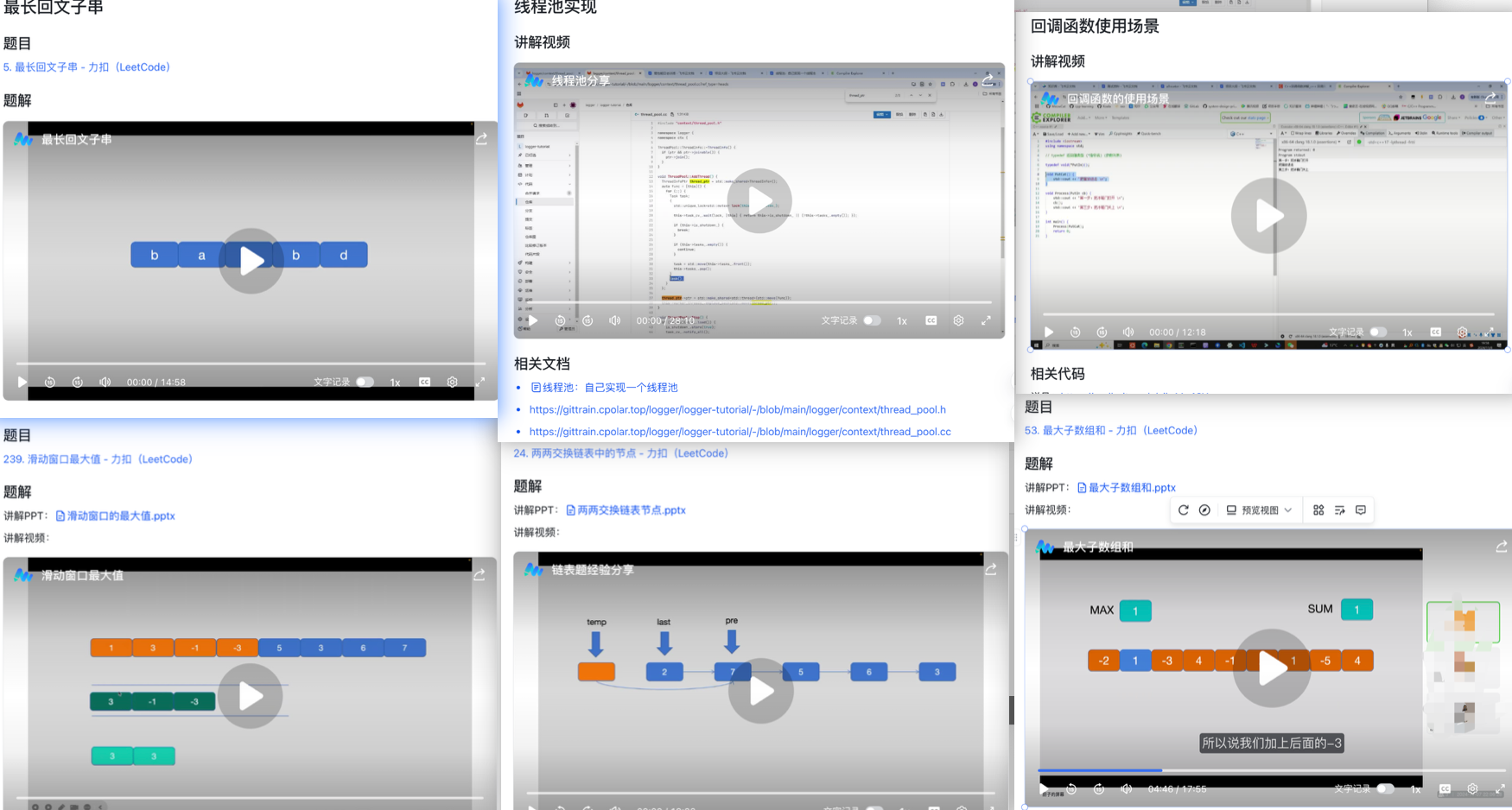 包含计算机基础,C++,Linux,计算机网络,操作系统,数据库,数据结构与算法,训练营内有大量的文字及视频讲解,遇到不会的问题,导师会直接拉会讲解(讲解时会录屏,方便后面的学生学习)帮助你更好的理解知识点